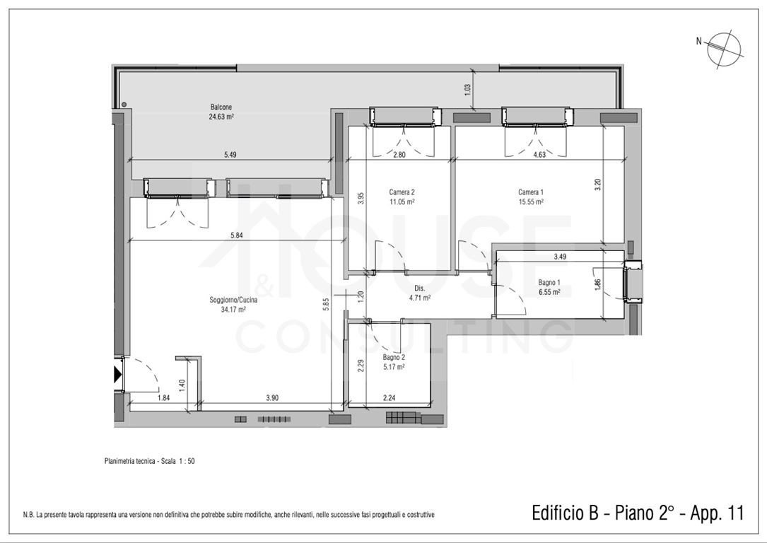 Appartamento al secondo piano di tre locali con doppi servizi 114 mq terrazzo coperto di 25 mq.