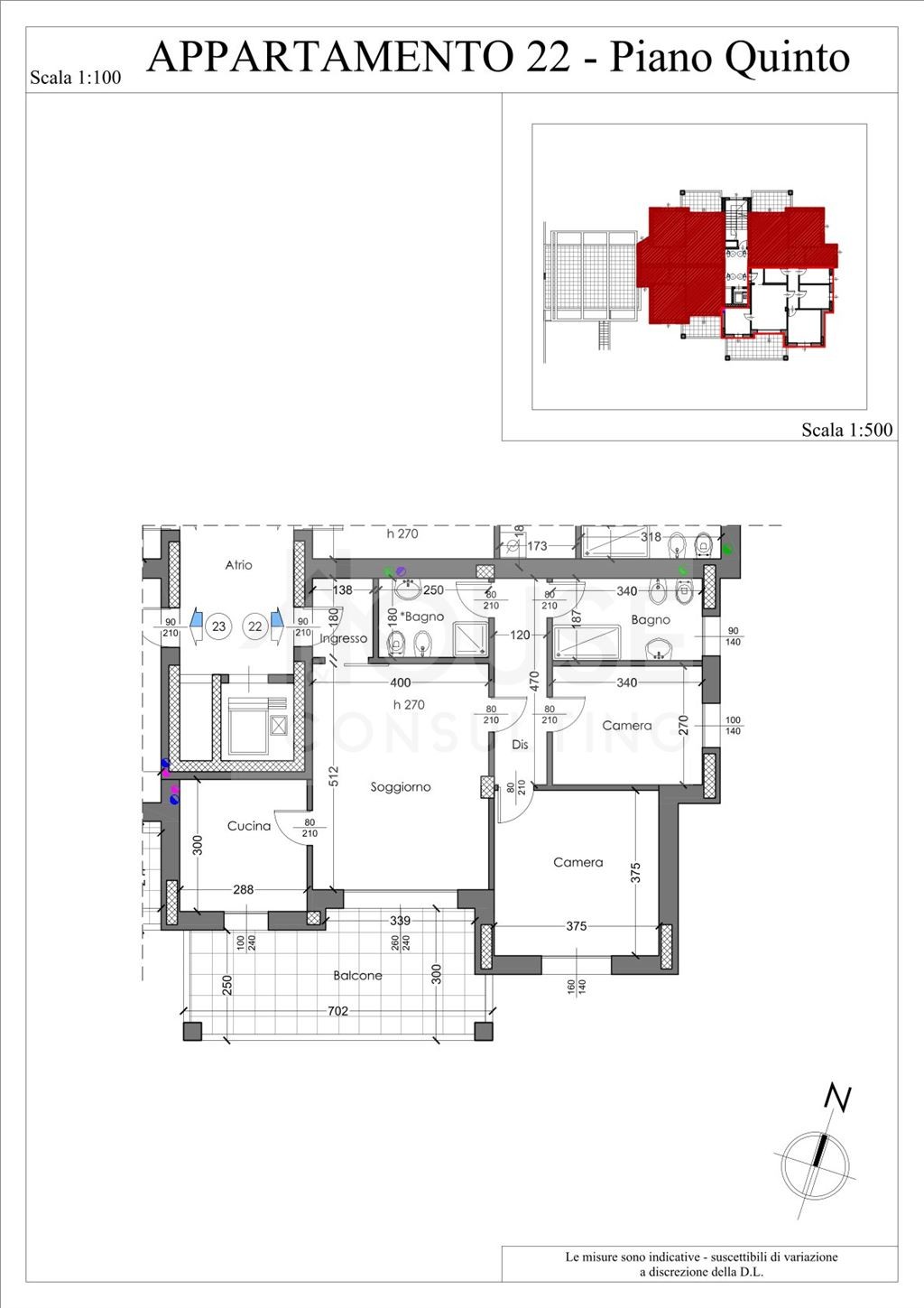 L’appartamento n. 22, situato al quinto piano, è composto da: