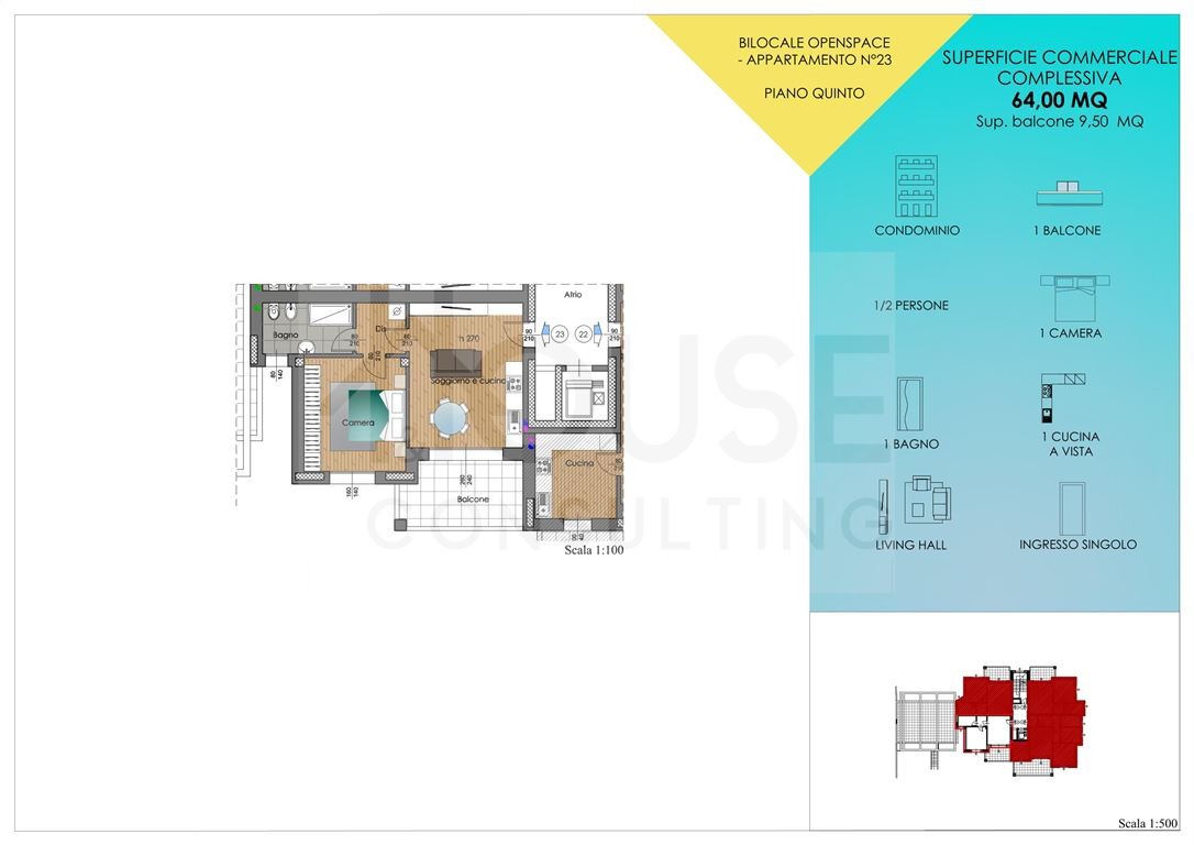 L’appartamento n. 23, situato al quinto piano, è composto da: