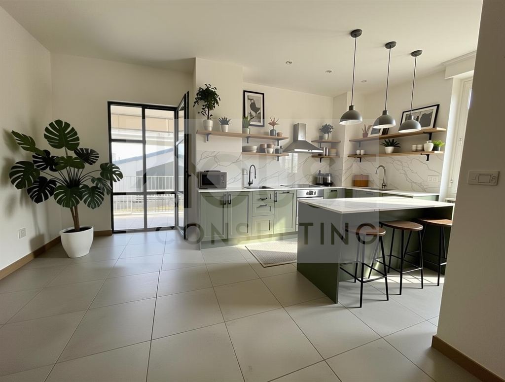- Zona giorno con ampia cucina a vista e accesso diretta al terrazzo di 75 mq